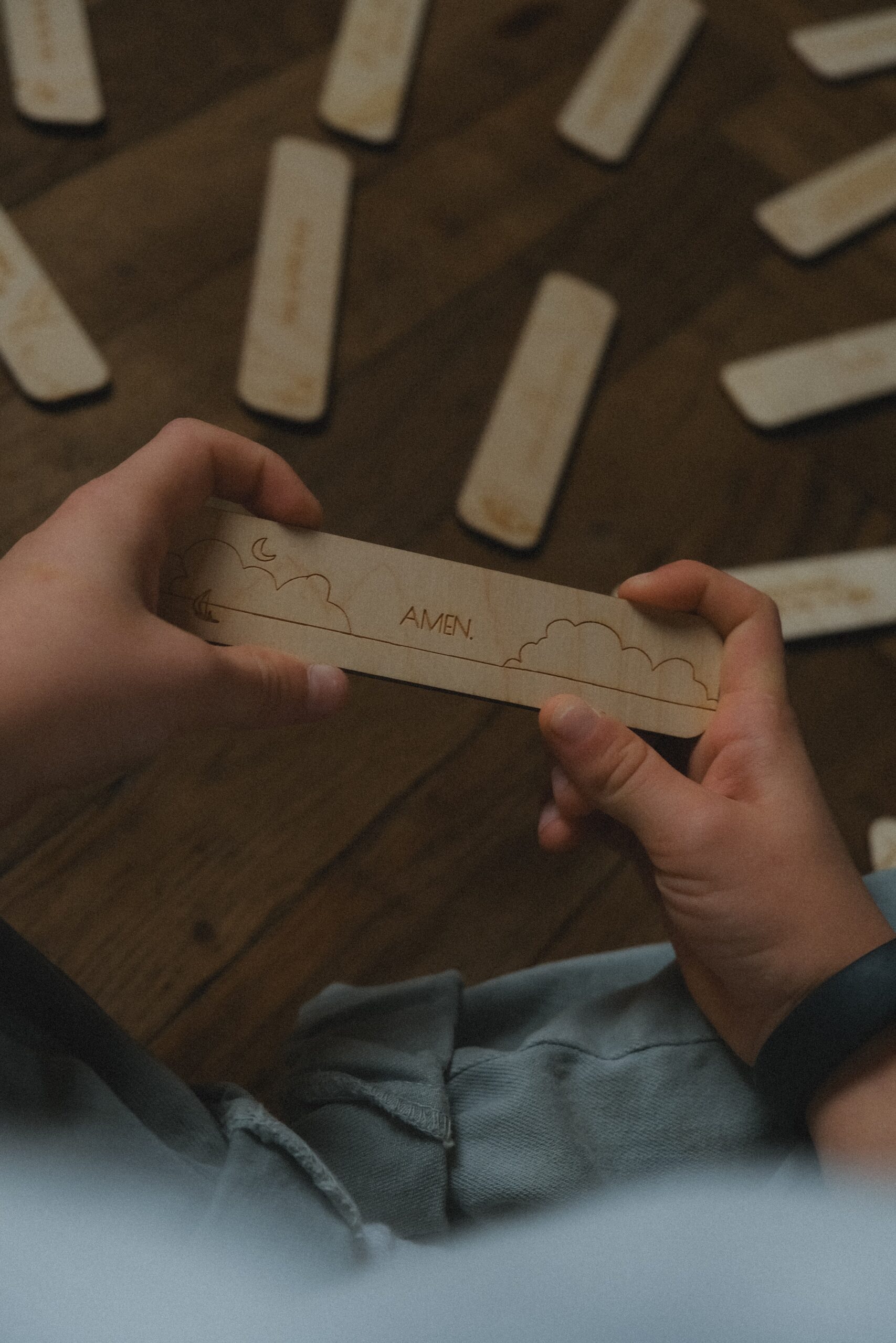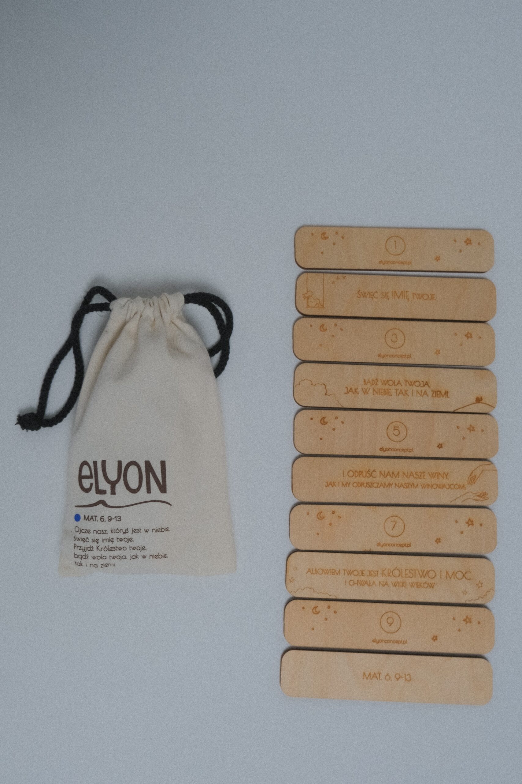 • 10 drewnianych płytek z fragmentem Biblii